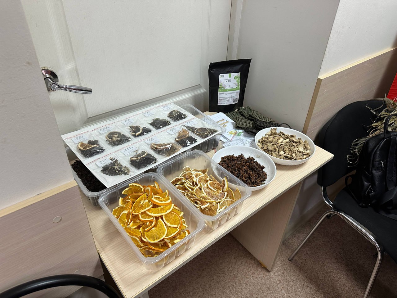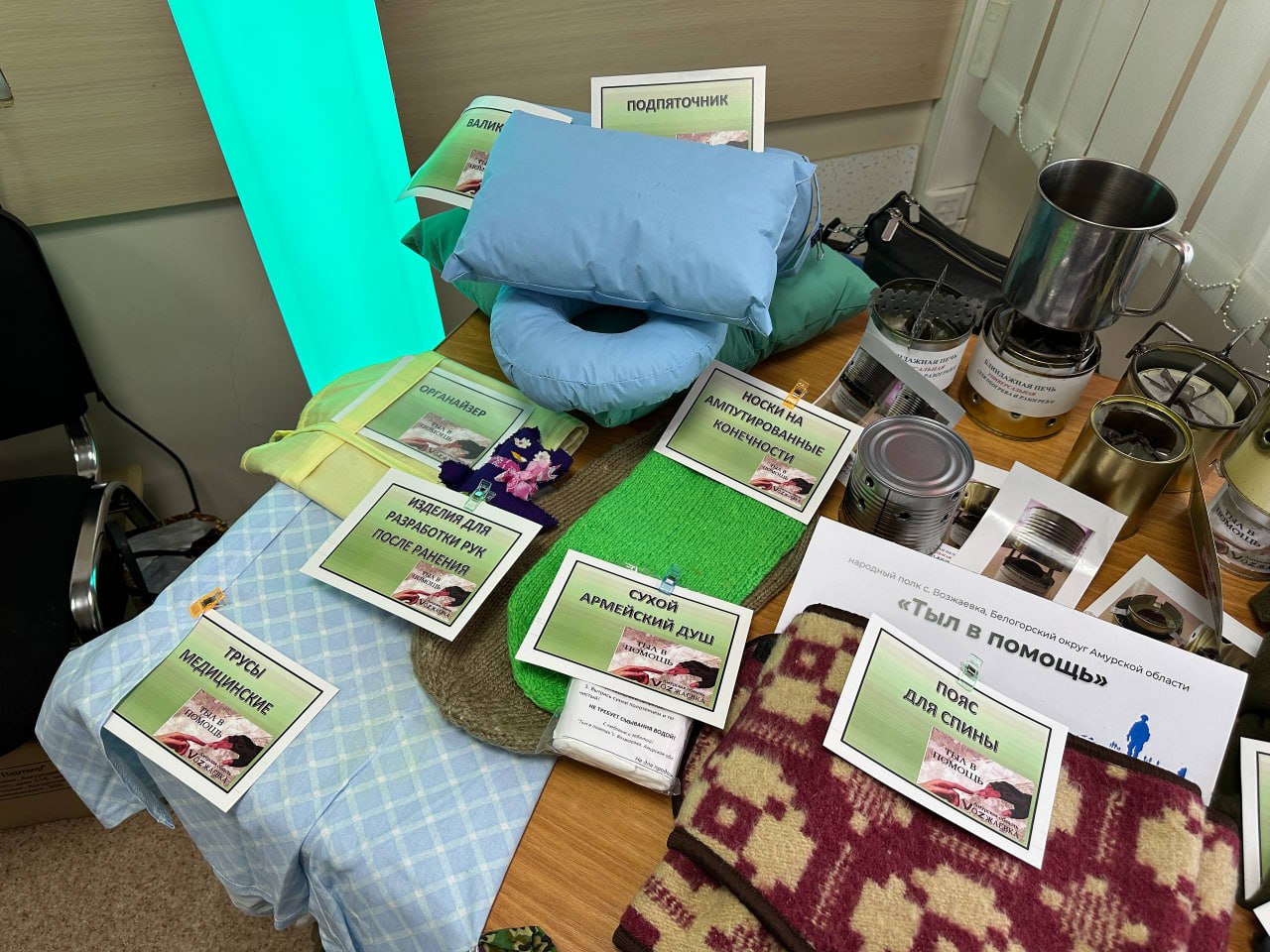 В рамках мероприятия прошли мастер-классы по изготовлению гуманитарной помощи для фронтовиков. Участники народного полка «Тыл в помощь» с. Возжаевка показали другим участникам готовые изделия для отправки: флисовые шапочки, балаклавы, блиндажные печи, пояса для спины, сухой армейский душ, носки на ампутированные конечности, подпяточники, органайзеры, тактические носилки и антидроновое одеяло с защитой от тепловизора. Все желающие примерили на себя сезонные маскировочные костюмы и поучаствовали в их создании. Волонтер из с. Светиловка Евгения Ломова изготавливает со школьниками чаи для тех, кто находится в зоне боевых действий. Они трудятся над сухими заготовками трав, фруктов и ягод, сортировкой массы по чайным пакетикам и их упаковкой перед отправкой на фронт. В этот раз она поделилась правилами сушки продуктов, пропорциями ингредиентов, а также рецептами. Все гости приняли участие в создании трех видов чая: черного с апельсином и бадьяном, черного с лимоном и имбирем и черного с мятой.