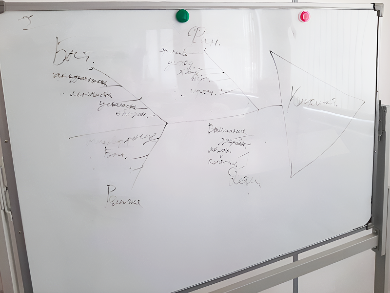 Психолог познакомил участников с принципами построения и применения этой диаграммы, также известной как «рыбья кость». Участники на практике разбирали, как использовать этот инструмент для выявления причинно-следственных связей в различных ситуациях, будь то проблемы со здоровьем, взаимоотношениями или личными финансами.