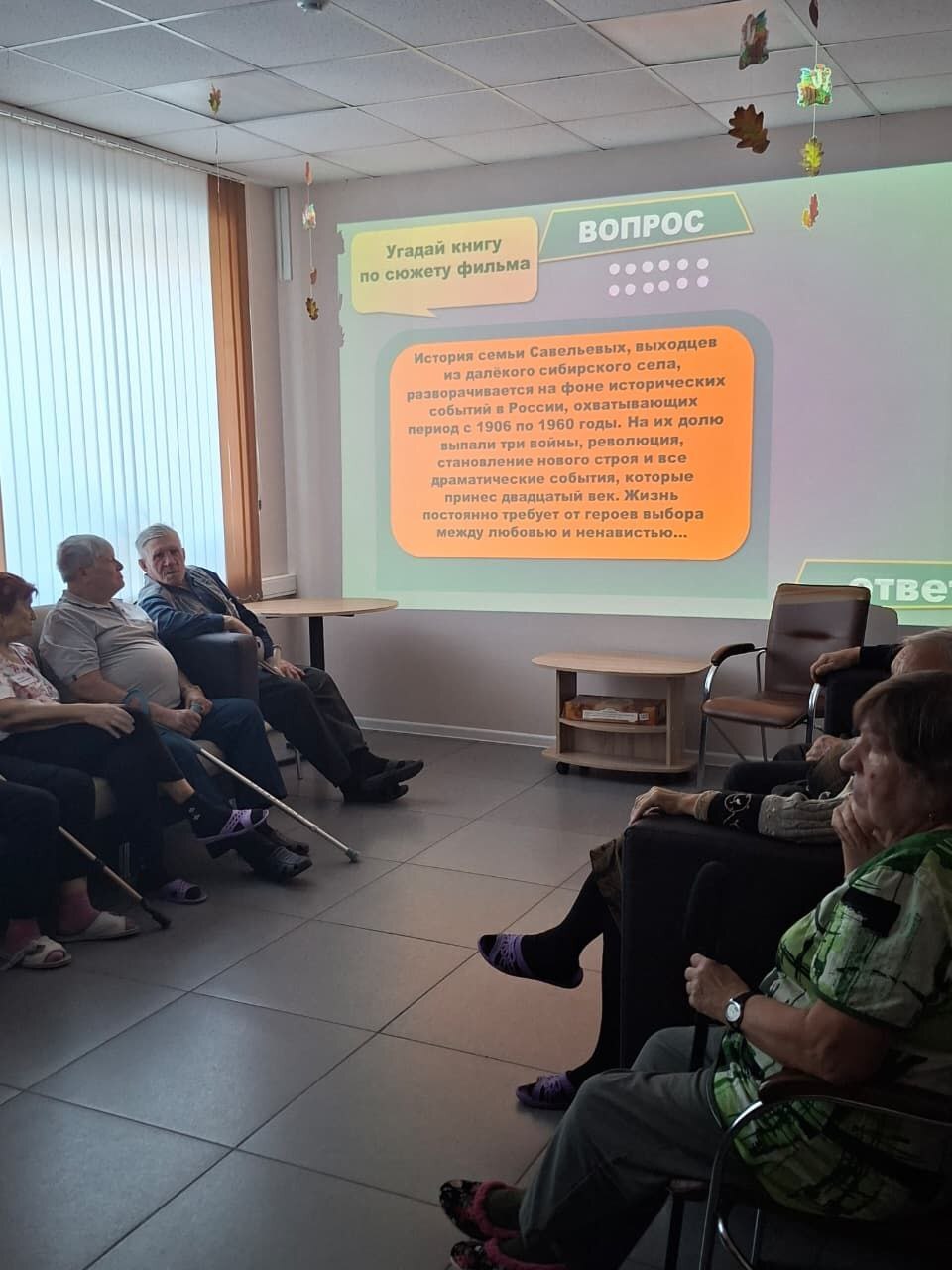 Сотрудник городской библиотеки Раиса Беликова провела для пожилых граждан викторину, посвященную взаимосвязи литературы и кинематографа – книгам, по которым были сняты известные фильмы.