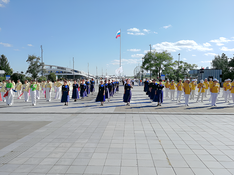 Благовещенск, Амурская область — В рамках Российско-китайской Ярмарки культуры и искусства на площади Ленина состоялся Международный танцевальный марафон «Танцы без границ». Участники мероприятия исполнили общий русский танец «Катюша» и китайский танец, собрав 15 команд из Амурской области и Харбина.
