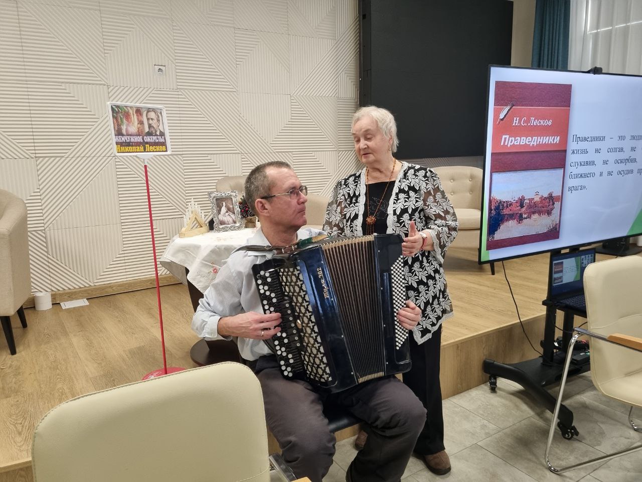 9 февраля для участников Центра «Амурское долголетие» в литературной гостиной прошло интересное мероприятие. Встреча была посвящена 195-летию со дня рождения русского писателя Н. С. Лескова. Участники и гости познакомились с произведением Н. С. Лескова «Жемчужное ожерелье».
