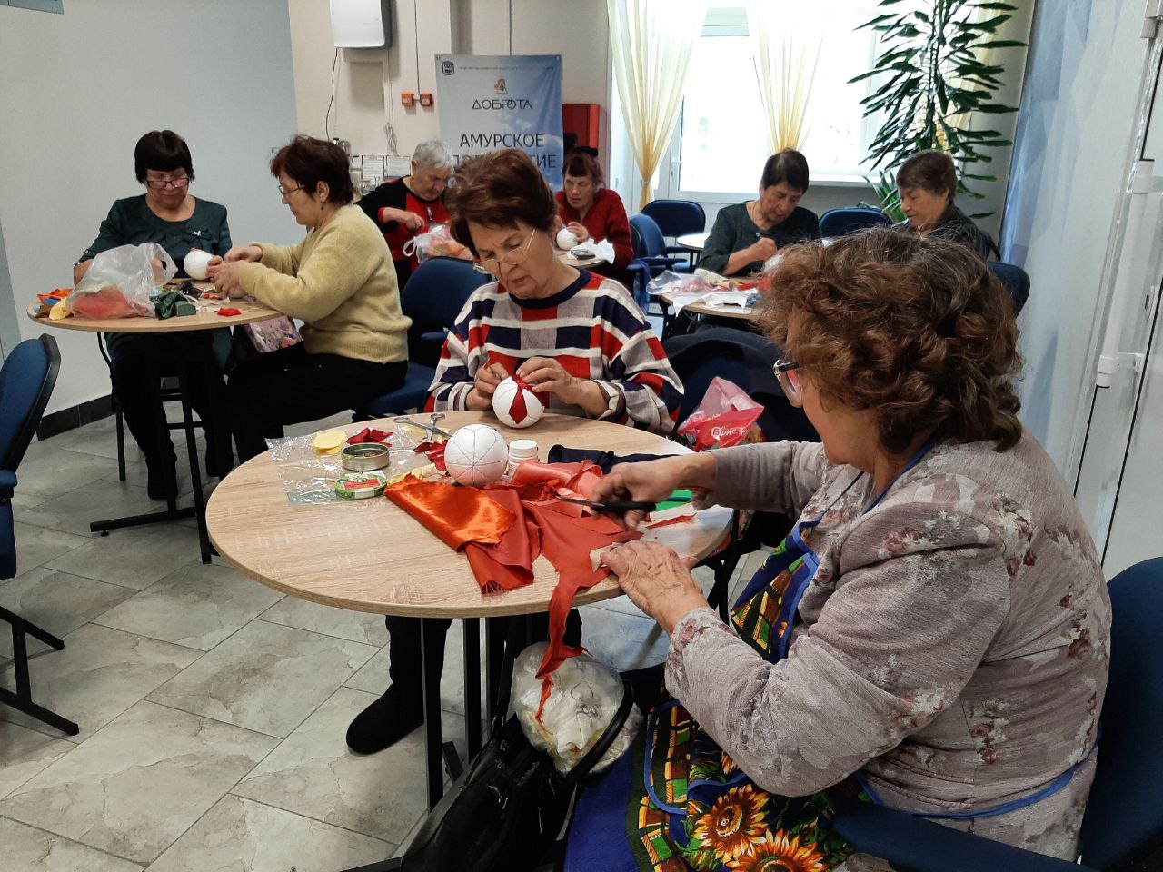В эти дни в Семейном МФЦ и Центре «Доброта» с целью добавить немного новогоднего волшебства в жизнь амурских долголетов, был организован мастер-класс по изготовлению новогоднего сувенира в технике кинусайга.
