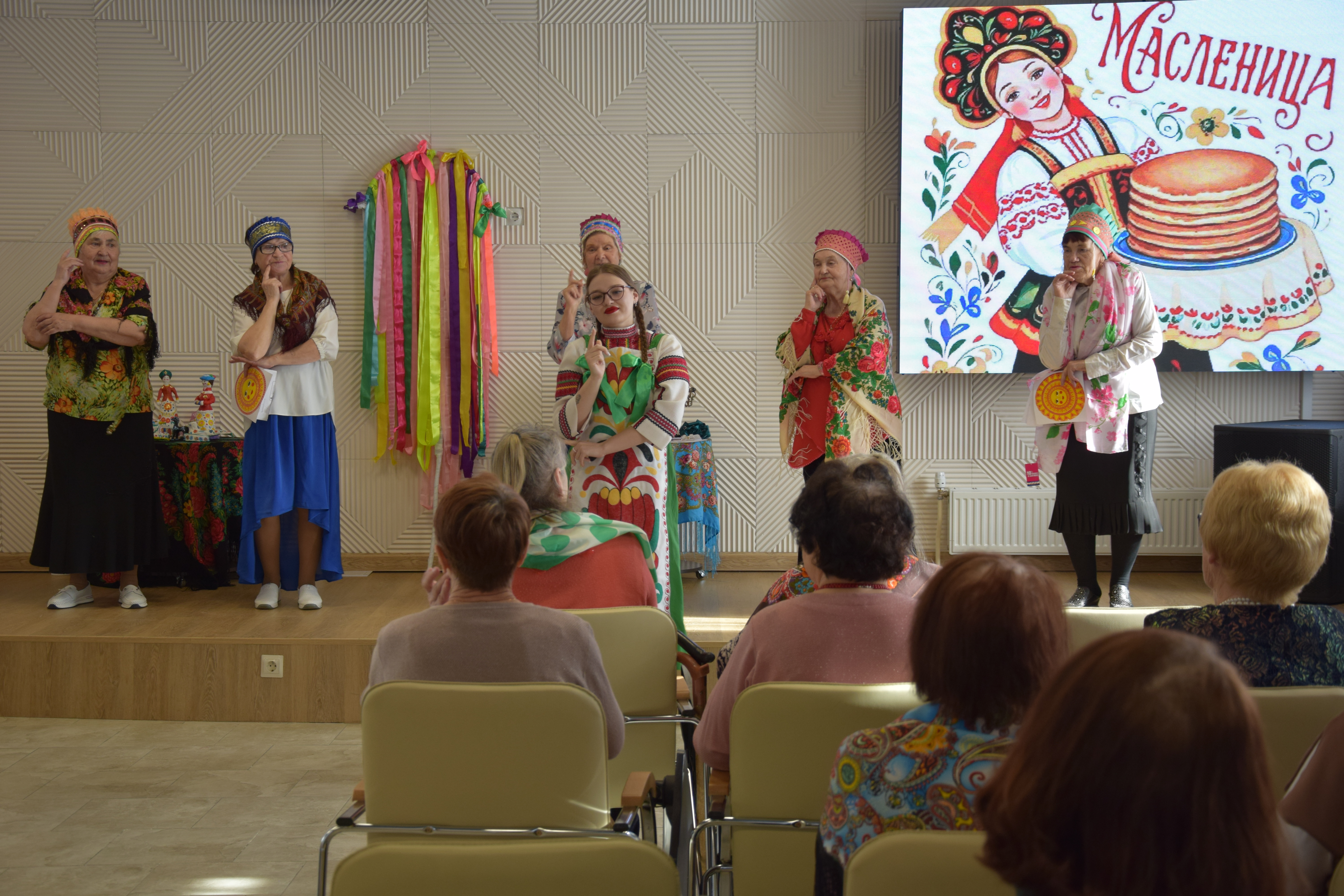 Сотрудники центра, облачившись в красочные фольклорные костюмы, создали неповторимую атмосферу настоящего народного праздника. Для гостей звучали не только традиционные заклички и задорные частушки, но и народные песни в исполнении вокальной группы «Криницы». Кульминацией музыкальной части стал флешмоб. Долголеты пустились в пляс, с удовольствием повторяя несложные, но зажигательные движения. Завершилось веселье дружным хороводом, в который выстроились все присутствующие. Не обошлось, конечно, и без традиционного чаепития с ароматными блинами, которые стали достойным завершением встречи.