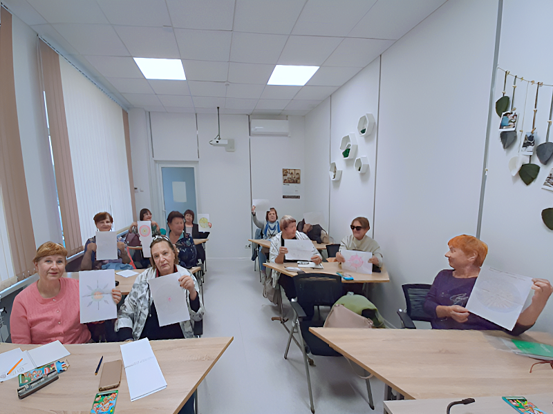 Еще одним аккордом сентября стал тренинг по интерпретации мандал с точки зрения психологии. Под руководством психолога, долголеты освоили древнее искусство создания и анализа мандал – сложных геометрических узоров, которые служат зеркалом внутреннего мира человека. Рисуя и анализируя свои мандалы, участники получили возможность лучше понять свое текущее состояние, свои ценности, скрытые желания и нераскрытые ресурсы.
