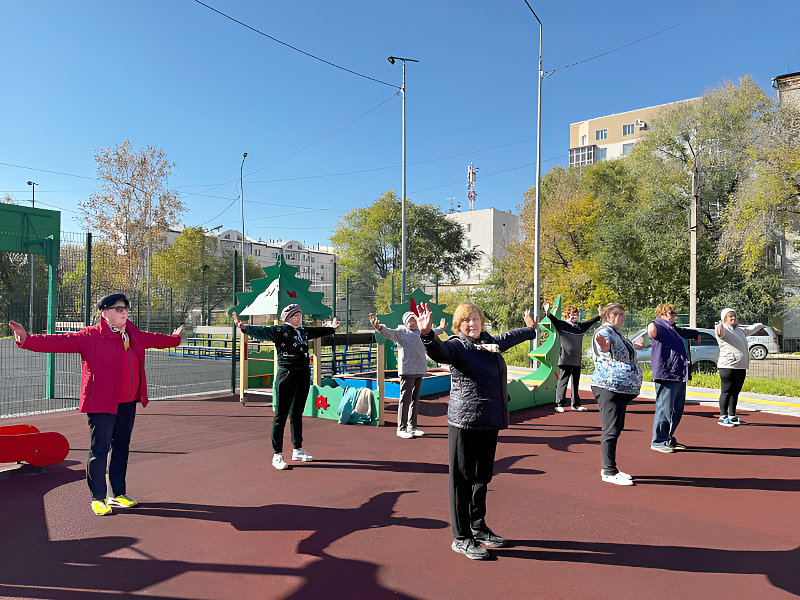 В Центре «Амурское долголетие» возобновились занятия «Час здоровья», посвященные поддержанию активного образа жизни и укреплению здоровья среди пожилых людей. Занятие началось с разминки, что позволило участникам подготовить тело к дальнейшим упражнениям, помогая каждому почувствовать себя бодрым и энергичным.