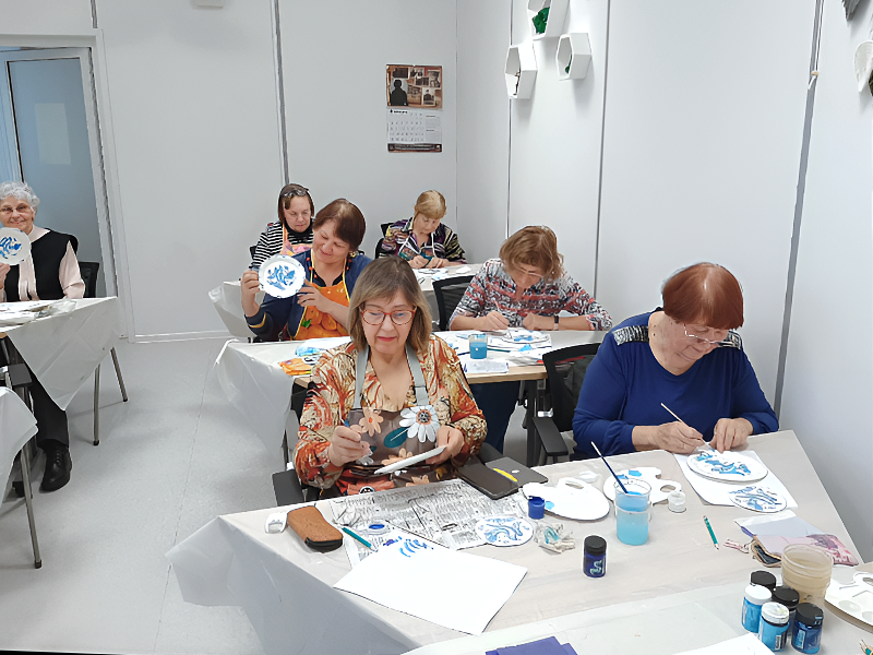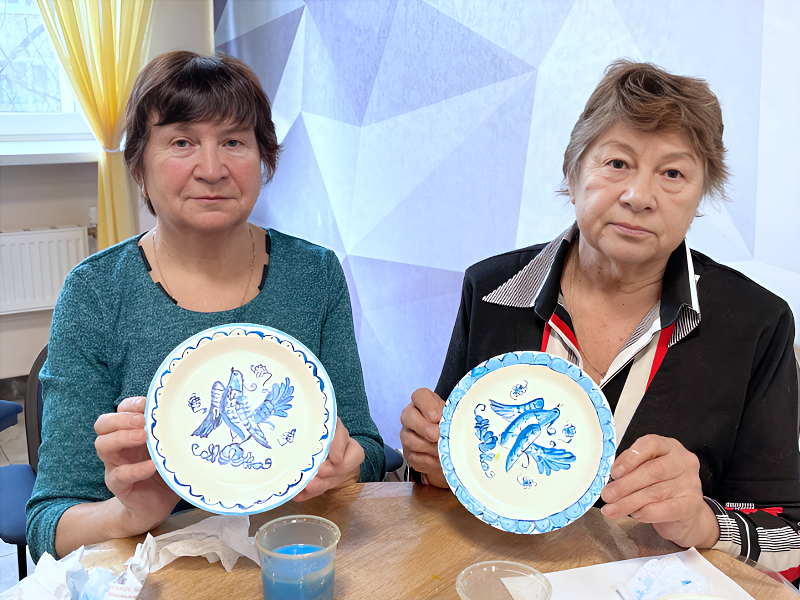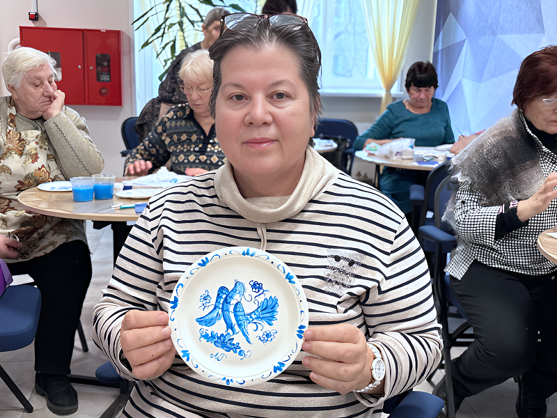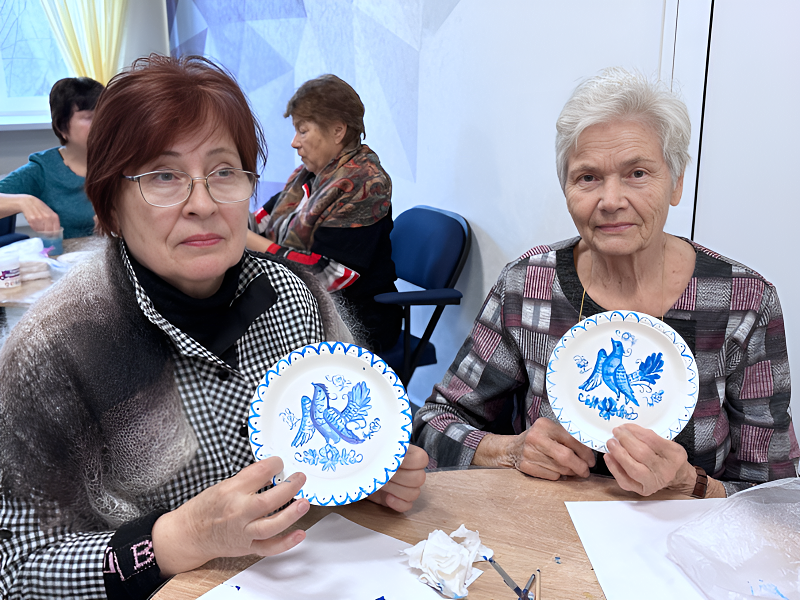 Каждый создал свой уникальный рисунок, используя традиционные приёмы гжельской росписи. Такие занятия помогают сохранять культурное наследие и дают людям возможность почувствовать радость от собственного творчества.