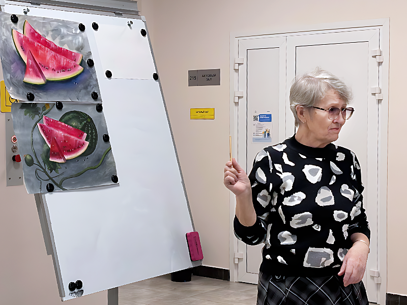 28 ноября в ГАУ АО «Благовещенский КЦСОН» состоялся творческий мастер-класс по живописи на тему «Сочный арбуз», организованный специально для амурских долголетов участницами Клуба «Живопись 55+». Мастер-класс провела Любовь Андреевна Лагута, в роли помощника выступила Ольга Александровна Тетерина.