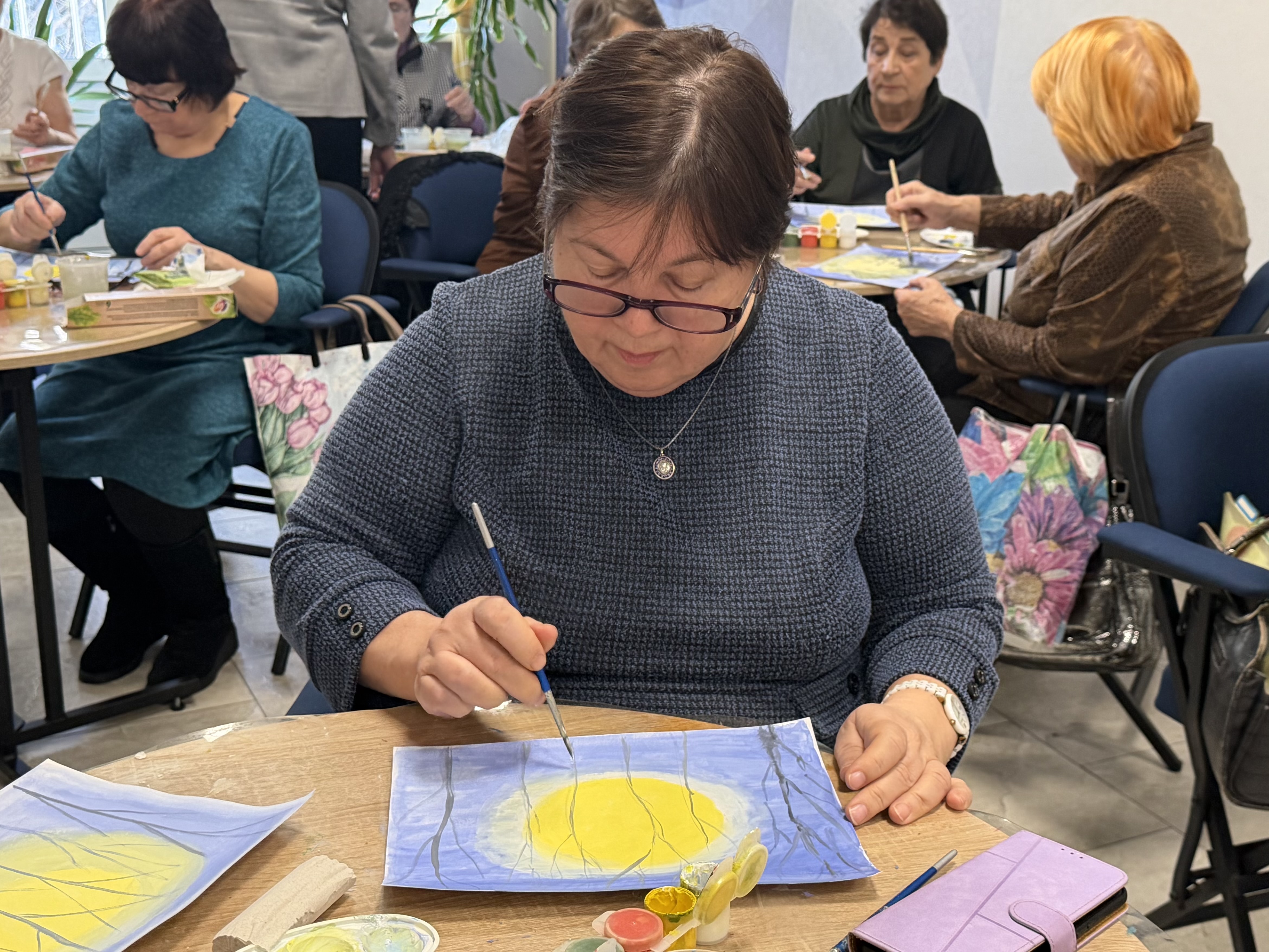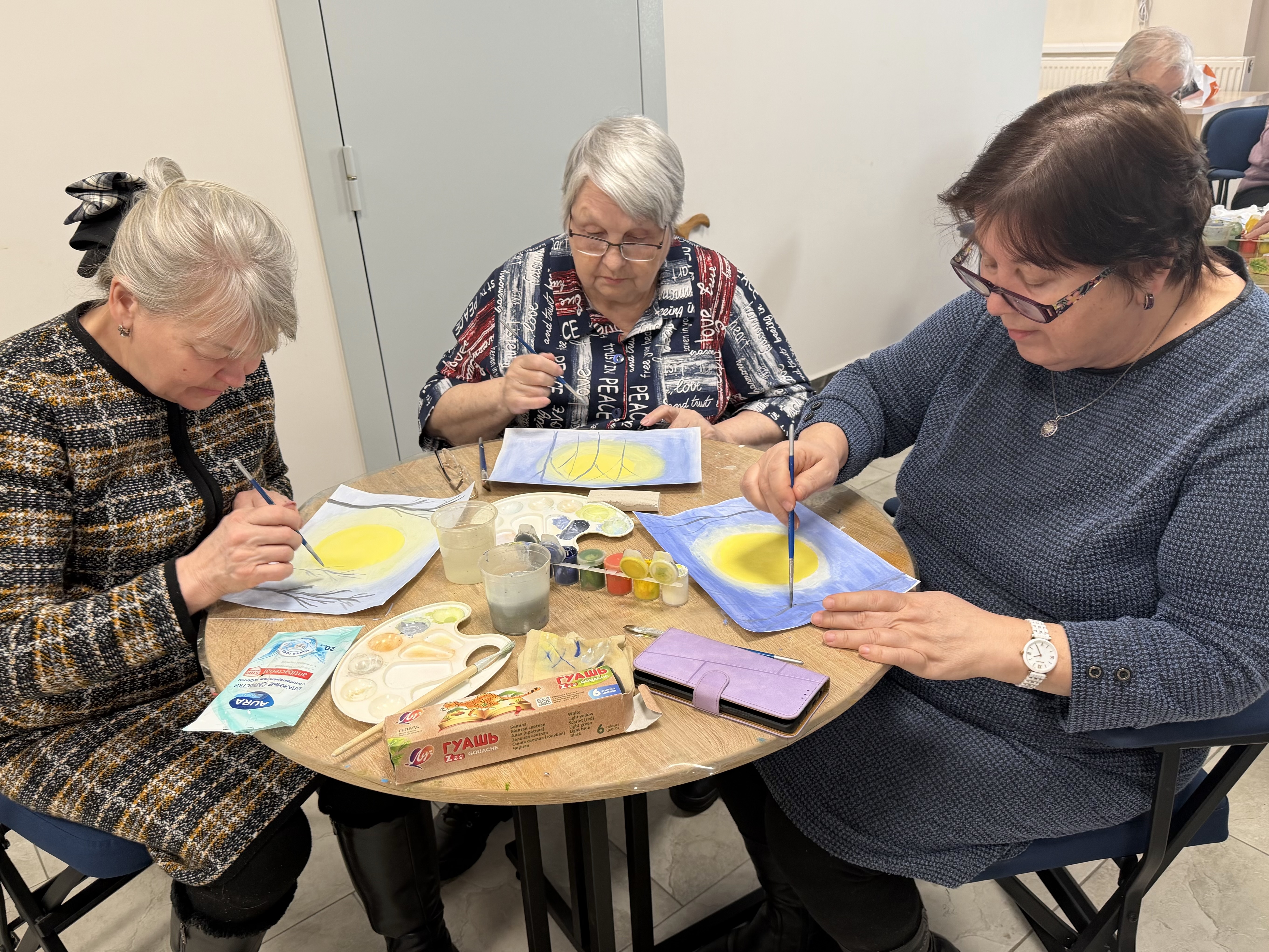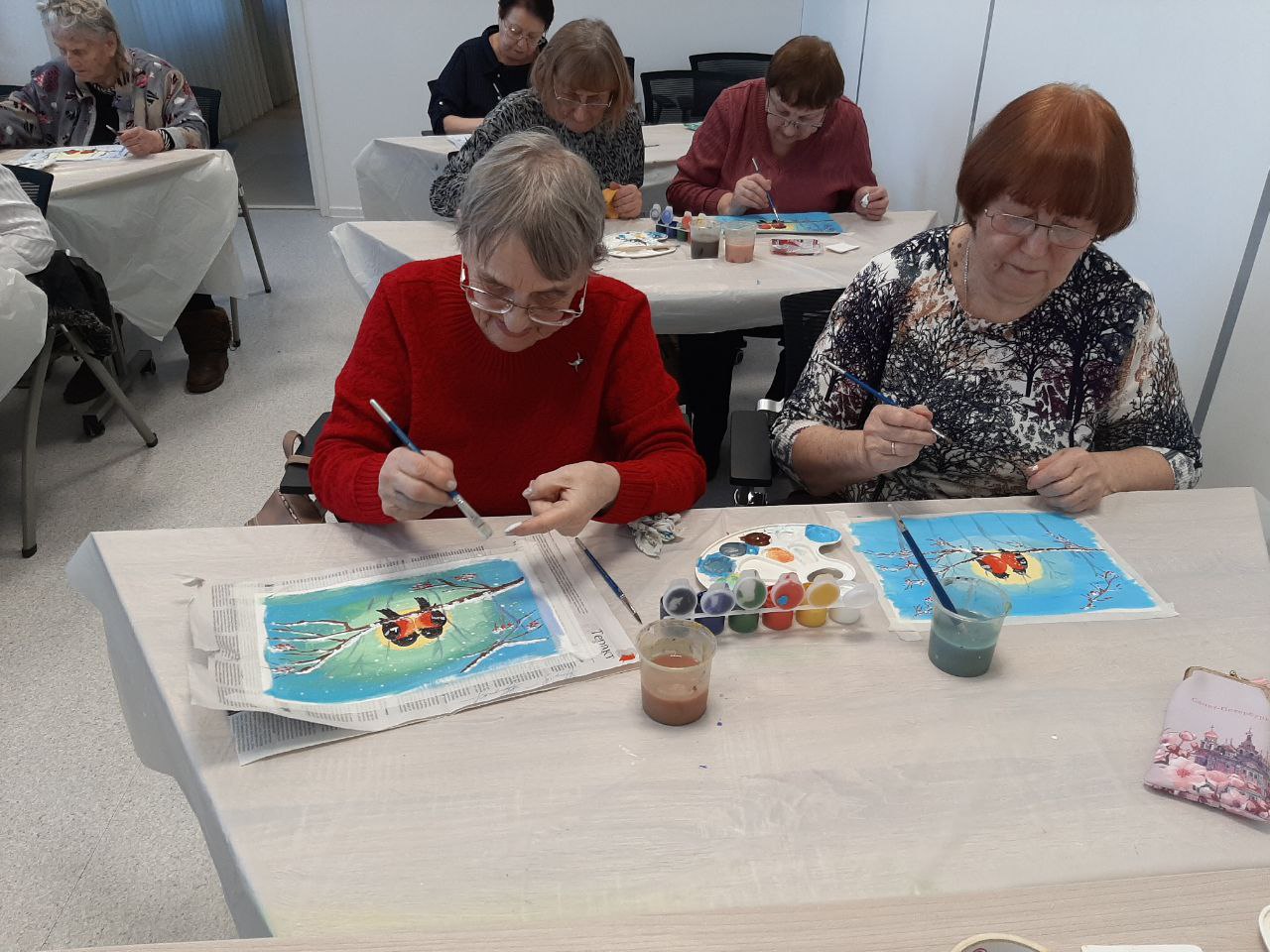 В современном мире искусство и творчество играют важную роль в поддержании здоровья и активности пожилых людей. Одним из ярких примеров таких мероприятий стал мастер-класс по рисованию зимнего пейзажа «Снегири», прошедший в уютном пространстве «Доброты» и многофункционального центра.