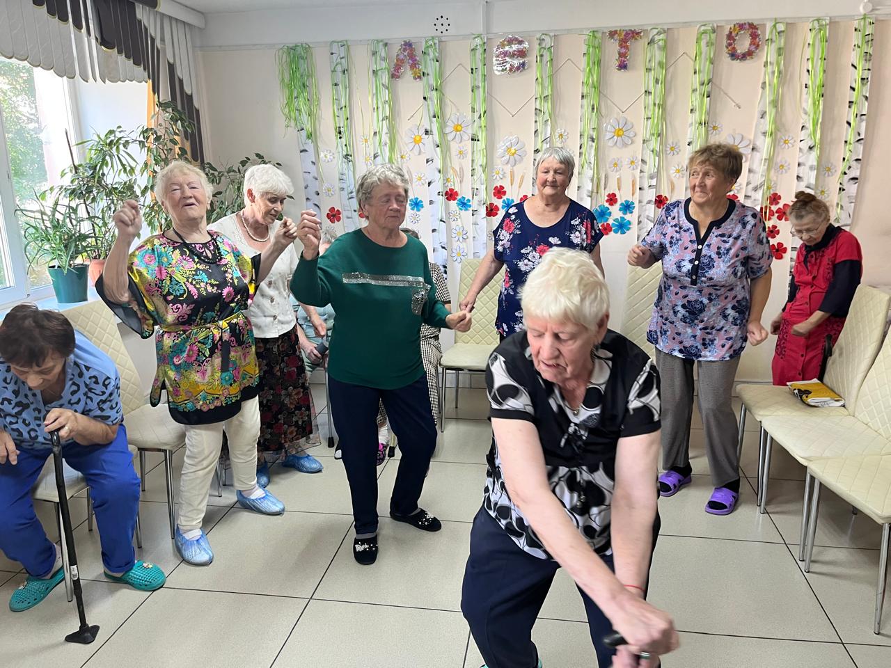 Также долголеты стали участниками кинопросмотра комедии «Пес Барбос и необычайный кросс», которая зарядила всех присутствующих хорошим настроением.