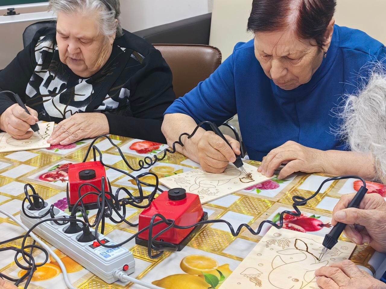 Многие долголеты признались, что никогда не задумывались о выжигании, а теперь с удивлением обнаружили, насколько это захватывающее и увлекательное занятие. Финальный момент — показ работ друг другу — вызвал бурю радостных улыбок и искренних восхищений.