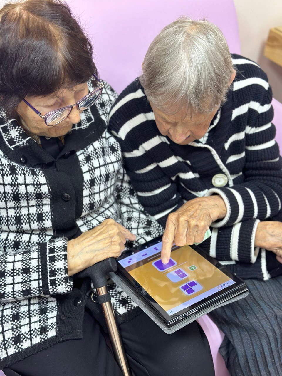 «Основная задача занятий — создать комфортную среду для тренировки и развития функций мозга, обеспечивающих память, внимание, пространственное восприятие и другие аспекты когнитивной деятельности, - рассказала специалист центра. - На групповых и индивидуальных занятиях используются современные и эффективные методики и техники. Например, двуручное рисование, где подопечным необходимо работать двумя руками одновременно. И если в начале это вызывало трудности, то сейчас сноровке пожилых граждан позавидует каждый. Также современные технологии предлагают широкий спектр инструментов для поддержания когнитивных функций, поэтому используются и цифровые методы тренировки, при помощи планшетов и интерактивной песочницы, которая сочетает в себе игровые элементы с научными методами стимуляции мозга, предлагая разнообразные упражнения».