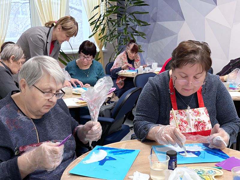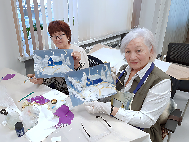 В преддверии новогодних праздников в Семейном МФЦ и Благовещенском КЦСОН состоялись мастер-классы по созданию зимнего пейзажа с использованием текстурной пасты. Мероприятие было организовано с целью подарить амурским долголетам немного волшебства, радости и вдохновить их на творчество.